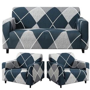 3+1+1 Seater Sofa Cover | 5 Seater Elastic Fitted Sofa Cover Set (Blue Grey)