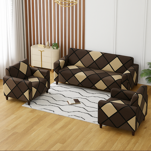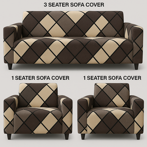 3+1+1 Seater Sofa Cover | 5 Seater Elastic Fitted Sofa Cover Set (Brown)