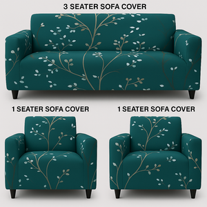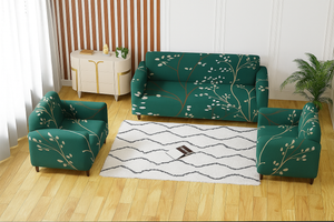 3+1+1 Seater Sofa Cover | 5 Seater Elastic Fitted Sofa Cover Set (Green)
