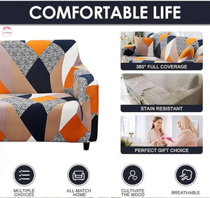 3+1+1 Seater Sofa Cover | 5 Seater Elastic Fitted Sofa Cover Set (Orange)