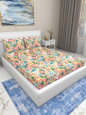 Coral Collection Fitted Double Bedsheet with 2 Pillow Cover | Yellow Floral