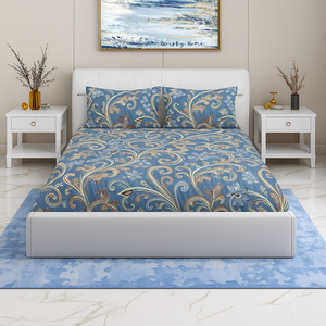 Coral Collection Fitted Double Bedsheet with 2 Pillow Cover | Blue Floral