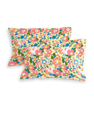 Coral Collection Flat Double Bedsheet with 2 Pillow Cover | Yellow Floral