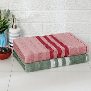 Cozy Nest 100% Cotton Towels | Large Size | Towel Set of 2 | Rose Gold - Olive Green
