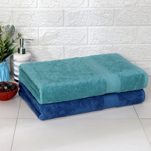 Rise N Shine 100% Cotton Towels | Large Size | Towel Set of 2 | Teal - Ink Blue