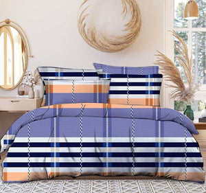 Fantasy Collection 180 TC Fitted King Bedsheet with 2 Pillow Covers | Blue Lines