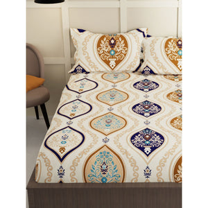 Fantasy Collection 180 TC Flat Queen Bedsheet with 2 Pillow Covers | Floral Ivory