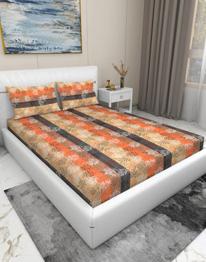 Fantasy Collection 180 TC Fitted Queen Bedsheet with 2 Pillow Covers | BOB STRIPES