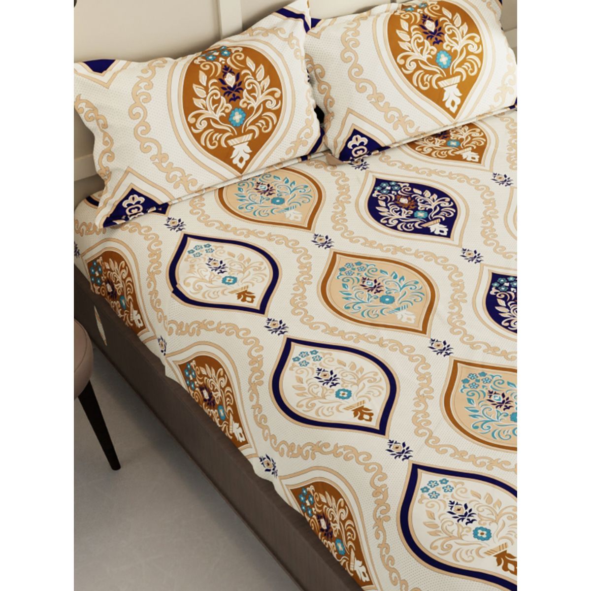 Fantasy Collection 180 TC Fitted Queen Bedsheet with 2 Pillow Covers | Ivory Floral