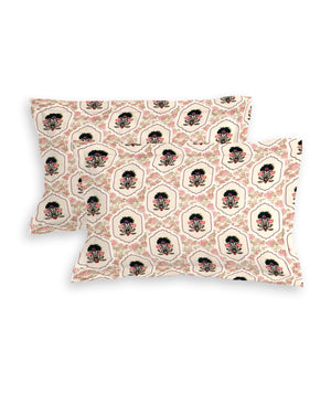 Fantasy Collection 180 TC Fitted Queen Bedsheet with 2 Pillow Covers | Baby Pink Flower