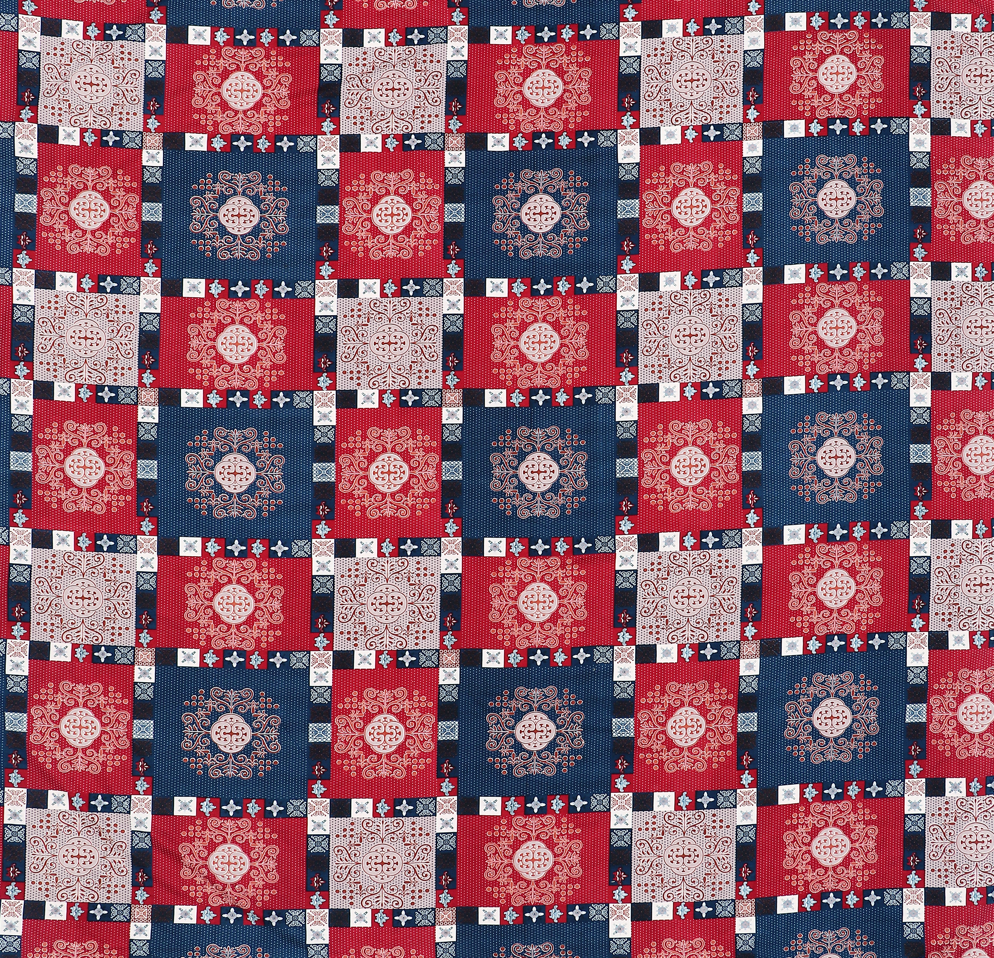 Fantasy Collection 180 TC Fitted Single Bedsheet with 1 Pillow Cover | Red Blue Squares