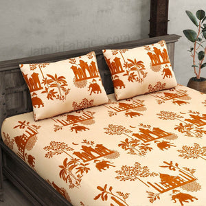 Fantasy Collection 180 TC Flat King Bedsheet with 2 Pillow Covers | Jaipuri Elephant