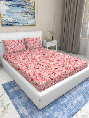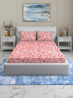 Fantasy Collection 180 TC Flat King Bedsheet with 2 Pillow Covers | Pink Floral