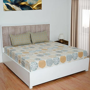 Posh Collection 220 TC Fitted King Bedsheet with 2 Pillow Covers | Sun Circles