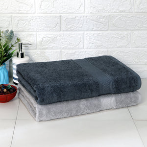Rise N Shine 100% Cotton Towels | Large Size | Towel Set of 2 | Grey - Navy Blue