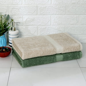 Rise N Shine 100% Cotton Towels | Large Size | Towel Set of 2 | Beige - Olive Green