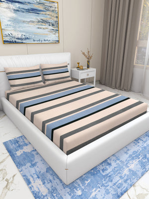 Rome Collection 220 TC King Bedsheet with 2 Pillow Covers | BG Stripes
