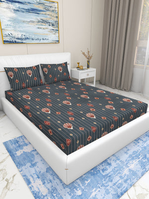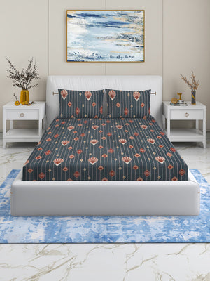 Rome Collection 220 TC King Bedsheet with 2 Pillow Covers | Dark Grey Trophy