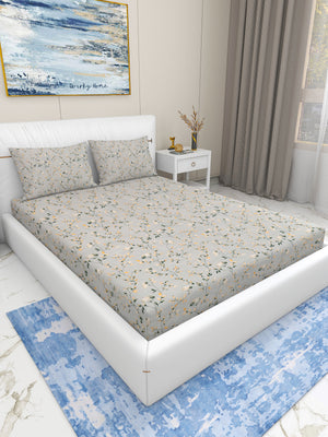 Rome Collection 220 TC King Bedsheet with 2 Pillow Covers | Grey Floral