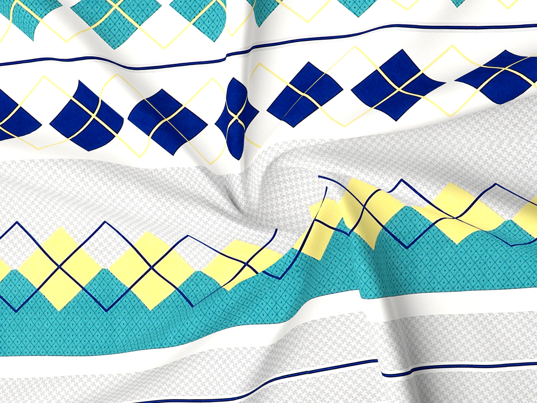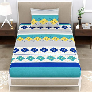 Rome Collection 220 TC Flat Single Bedsheet with 1 Pillow Cover | Blue Green Diamond