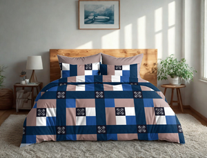 Classic Collection 144 TC Double Bedsheet | Navy Squares
