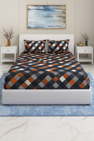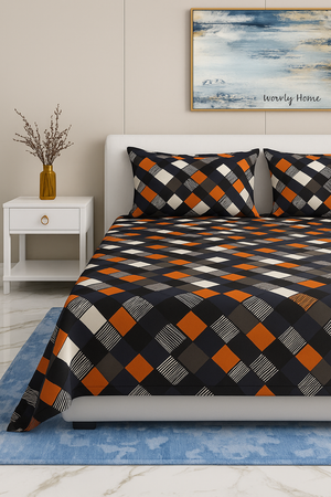 Classic Collection 144 TC Double Bedsheet | Orange Navy Squares