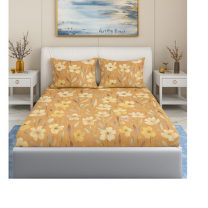 Coral Collection Double Bedsheet with 2 Pillow Covers | Mustard