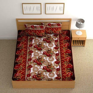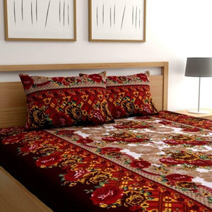 Duke Collection Cotton Blend Double Bedsheet with 2 Pillow Cover | Brown Floral