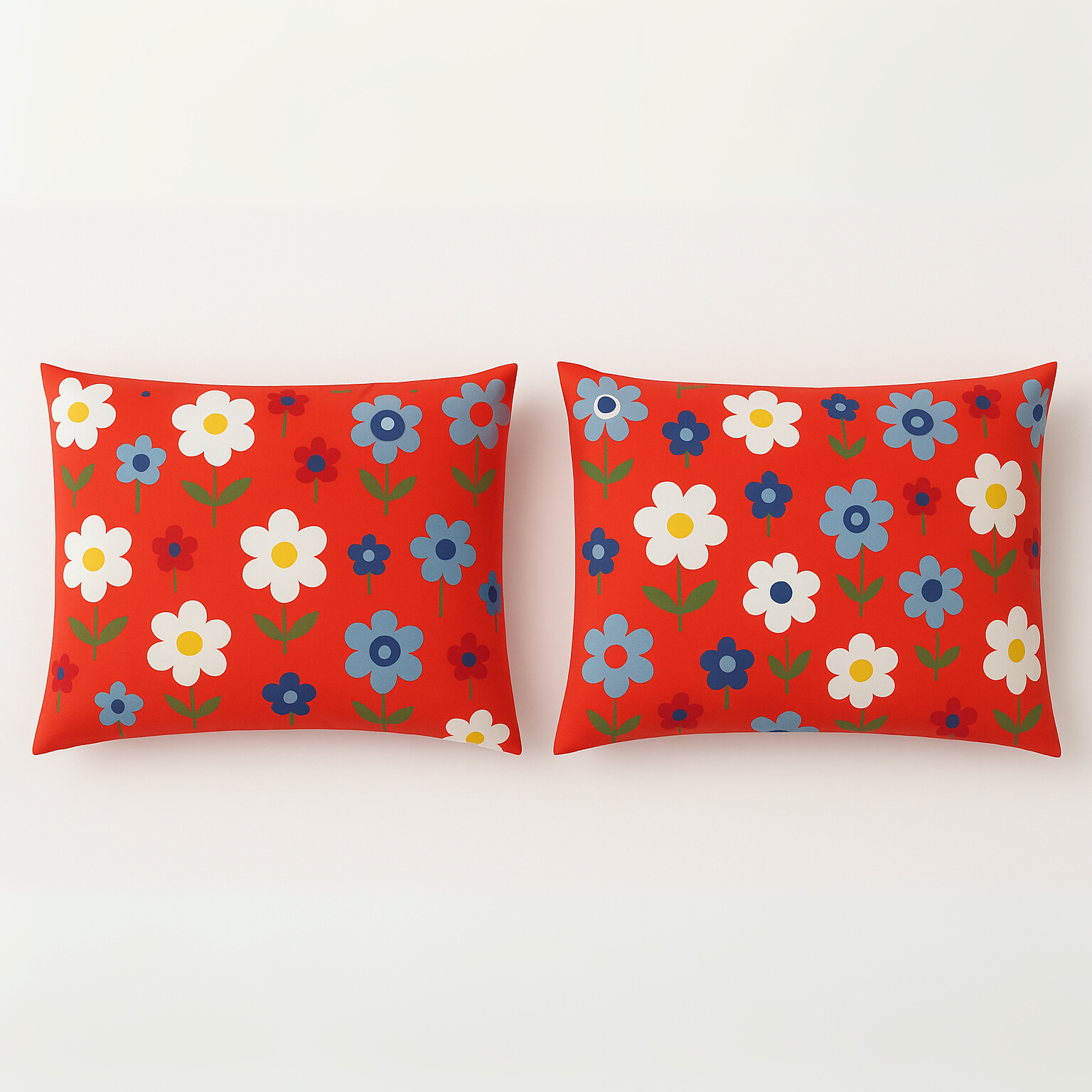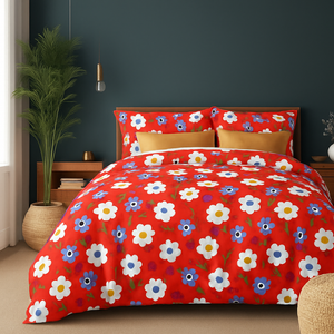 Duke Collection Cotton Blend Double Bedsheet with 2 Pillow Cover | Red Flowers