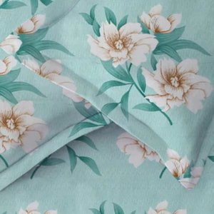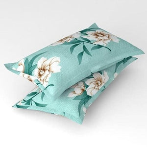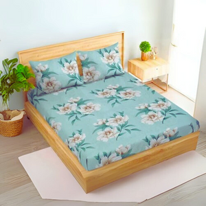 Duke Collection Cotton Blend Double Bedsheet with 2 Pillow Cover | Sea Green Flowers