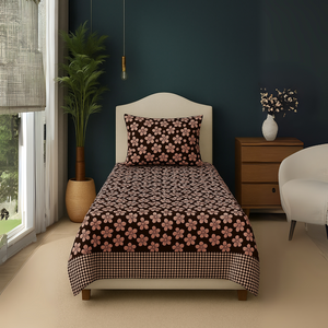 Duke Collection Cotton Blend Single Bedsheet with 1 Pillow Cover | Brown Flowers