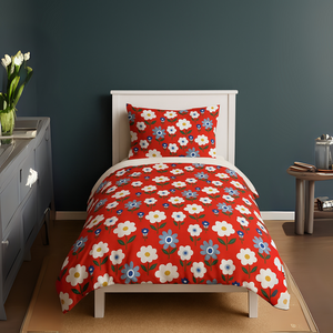 Duke Collection Cotton Blend Single Bedsheet with 1 Pillow Cover | Red Flowers