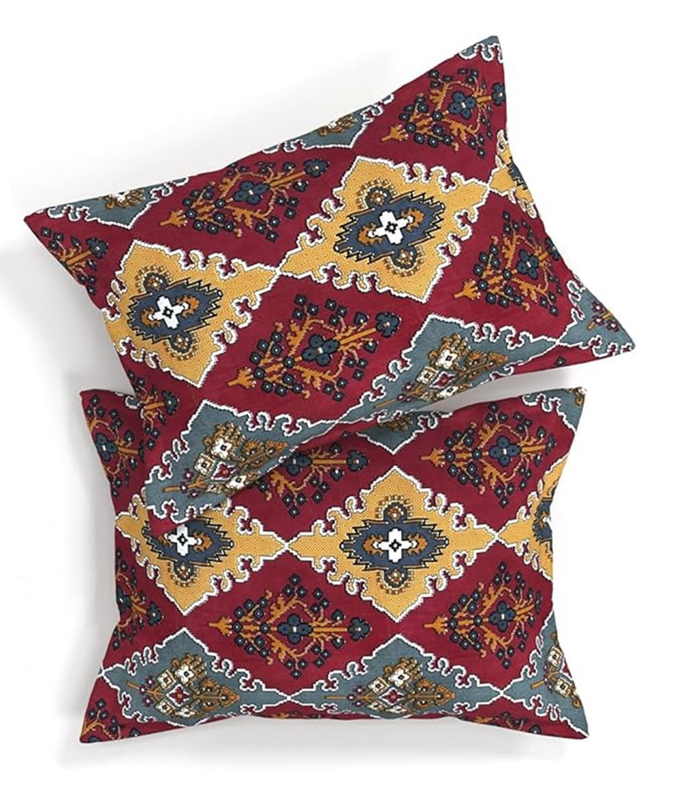 Classic Collection Flat Double Bedsheet with 2 Pillow Cover | Maroon Traditional
