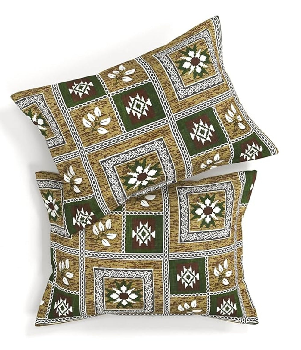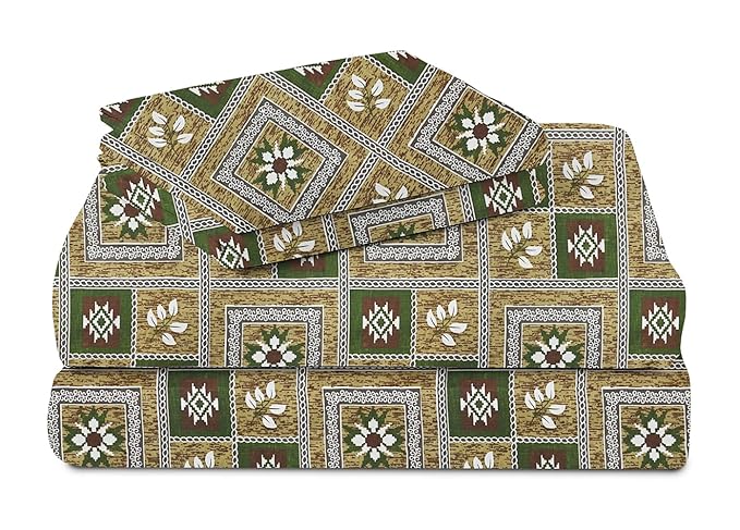 Classic Collection Flat Double Bedsheet with 2 Pillow Cover | Olive Green Motifs