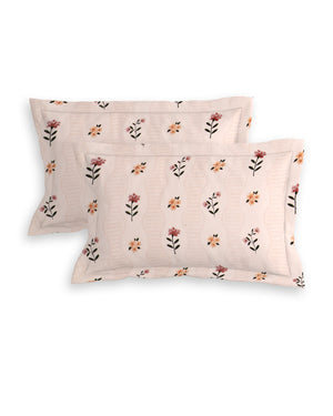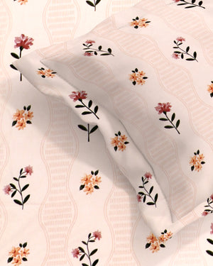 Rome Collection 220 TC Fitted Double Bedsheet with 2 Pillow Covers | Pink Flower