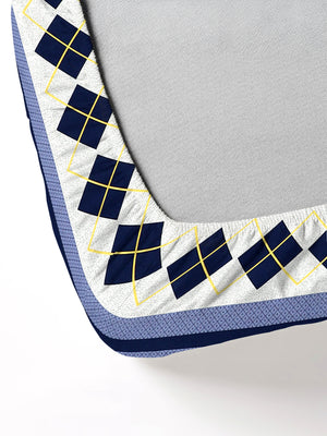 Rome Collection 220 TC Fitted Queen Bedsheet with 2 Pillow Covers | Pink Blue Diamond