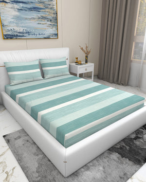 Rome Collection 220 TC King Bedsheet with 2 Pillow Covers | Green Lines