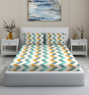 Rome Collection 220 TC King Bedsheet with 2 Pillow Covers | Multi Zig Zag