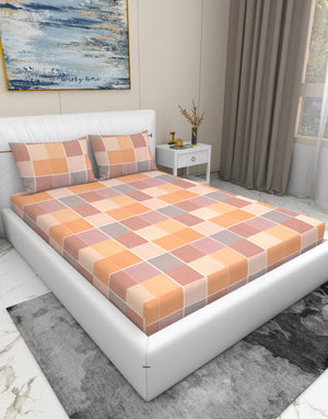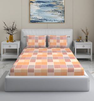 Rome Collection 220 TC King Bedsheet with 2 Pillow Covers | Peach Check