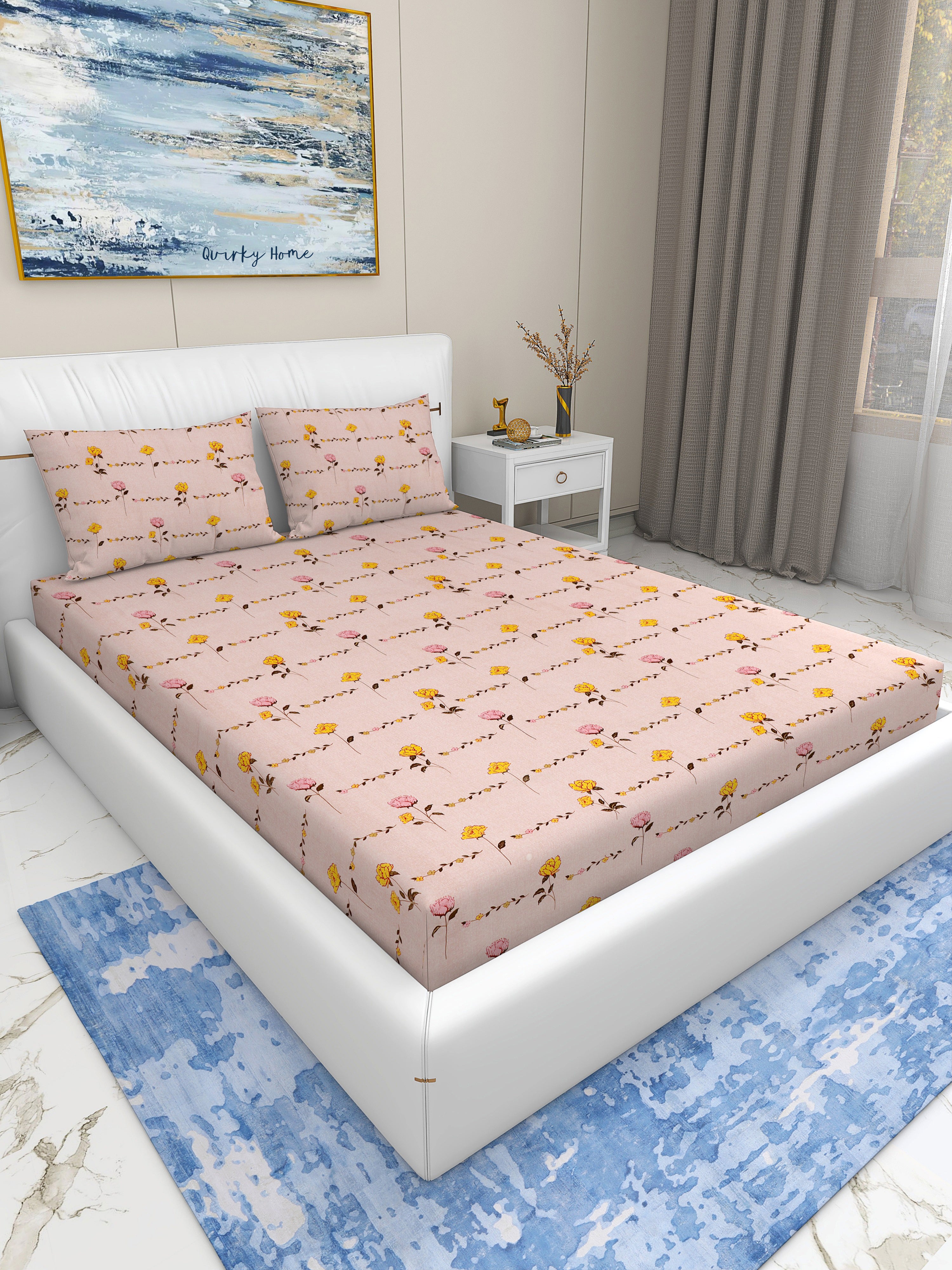The bedsheet creates a perfect blend of contemporary design and timeless elegance. Measuring a generous 108X108 inches with 2 Pillow Cover measuring 20X30 inches, this bedsheet provides ample coverage for your bed.