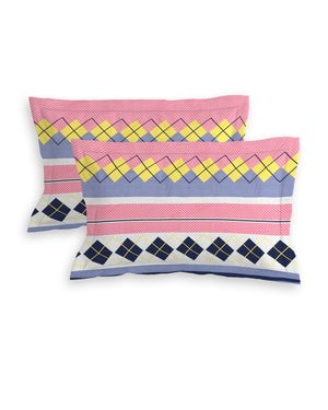 Rome Collection 220 TC Queen Bedsheet with 2 Pillow Covers | Pink Blue Diamond