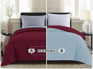 Solid Reversible Comforter | Microfiber Quilted | Red Blue